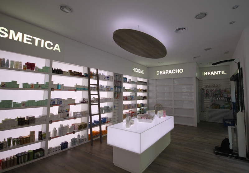 Reformas integrales de locales de oficinas de FARMACIA, buscando un espacio unico donde el producto adquiere protagonismo. Diseño de mobiliario y exposicion unicos y personalizados. Licencias de actividad para sanidad.